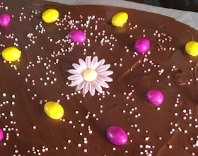 Smeer de overgebleven gesmolten chocolade dun uit op bakpapier en versier deze ook met strooisel. Zie meerdere voorbeelden: chocolate bark.